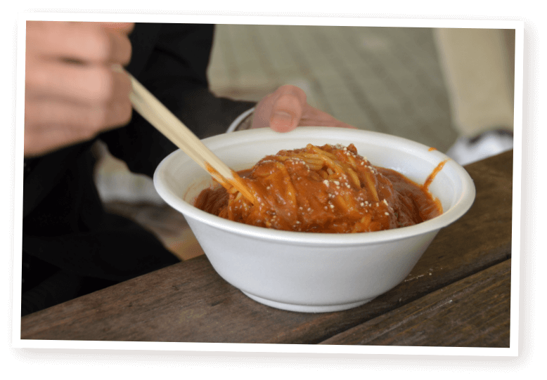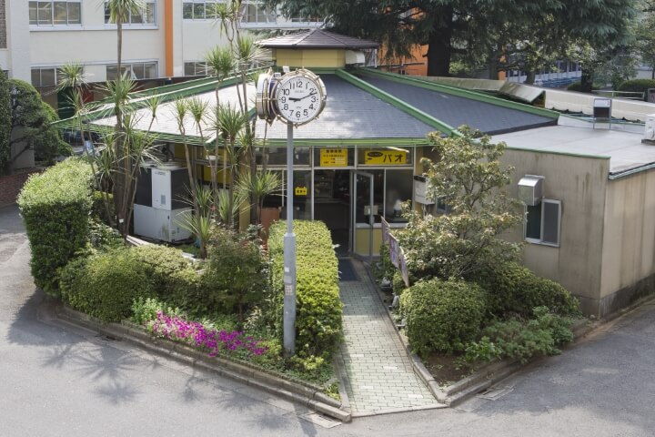 喫茶「パオ」は、昭和42(1967)年開業の軽食を提供する喫茶店でした。同窓生や教職員の方にとって最も思い出に残る建物ではないでしょうか。軽食と称しながらも、スパゲティを中心としたボリュームのあるメニューの数々は、「青春の味」として記憶されている方も多いと思います。また、隣接する飲食スペースはいつの頃からか「出店」と呼ばれるようになり、主に団体・サークル仲間の集いの場として、ランチタイムや授業の合間などは大変な賑わいでした。