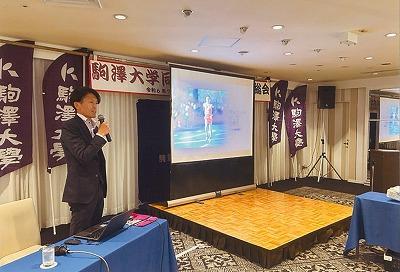 総会では、令和5年度事業報告・決算報告、令和6年度の事業計画・予算案を承認いただきました。記念講演では、駒大が箱根駅伝で4連覇時の中心選手であった糟谷 悟氏をお迎えし、映像を交え楽しくお話をいただきました。また、この講演会には地元、東明高校駅伝部の選手の皆さんにも聴講いただき、大変喜んでいただきました。