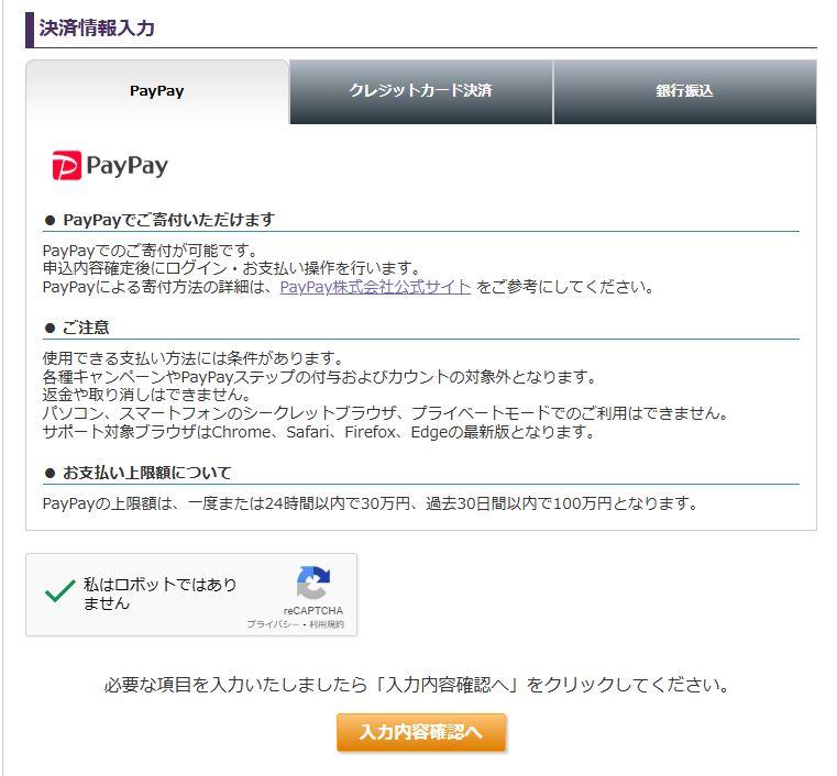 ④スマートフォン、パソコンでPayPayで寄付する場合の画面