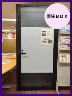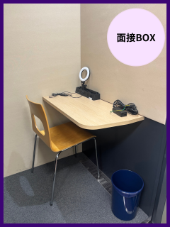 学内でオンライン面接を受けることができるよう、面接BOX(テレワークブース)を設置しています。