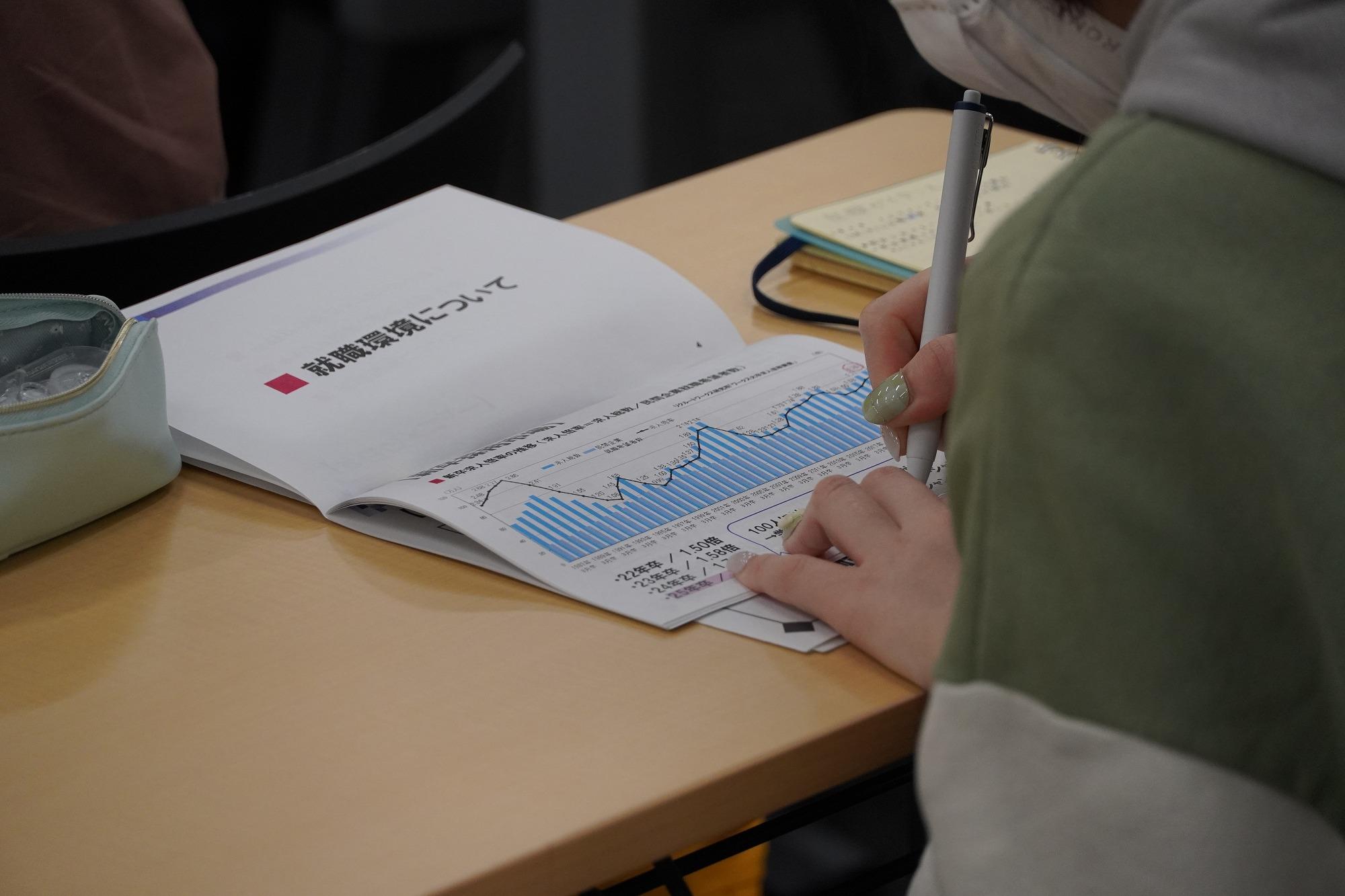 就職活動の全体像から3年次になった際の具体的な準備についてまでお話しいただき、公務員試験との併願に関する注意点についても触れて解説いただきました。残り1カ月少しの春休み期間にできる準備のポイントなどを学生に伝えて頂き、参加学生たちは不安が軽くなったような表情でした。