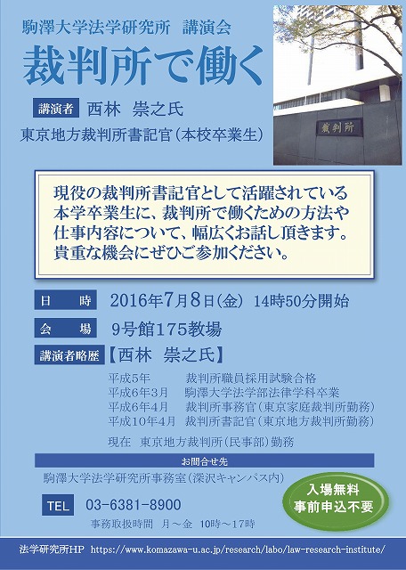 法学研究所講演会「裁判所で働く」を開催いたします