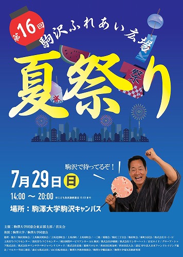 「第16回駒沢ふれあい広場夏祭り」を、駒澤大学同窓会東京都支部および営友会主催で開催いたします。皆さまのご参加をお待ちしております。