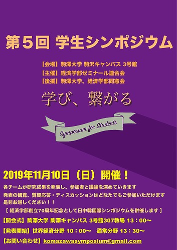 経済学部ゼミナール連合会は、第5回目となる学生シンポジウムを11月10日(日)に開催します。