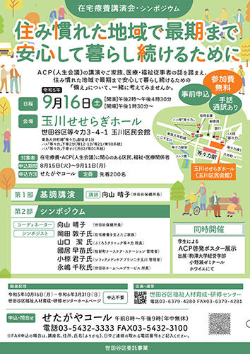 | 展示企画1 在宅療養講演会・シンポジウム (主催:世田谷区福祉人材育成・研修センター) | 日時 | 9月16日(土)14:00~16:30 |