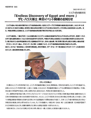 今回のザヒ博士の日本訪問は、150 年以上前から続いているエジプトと日本の友好関係の深さを強調し、さらにサステナブルなものにするという目的を持っています。