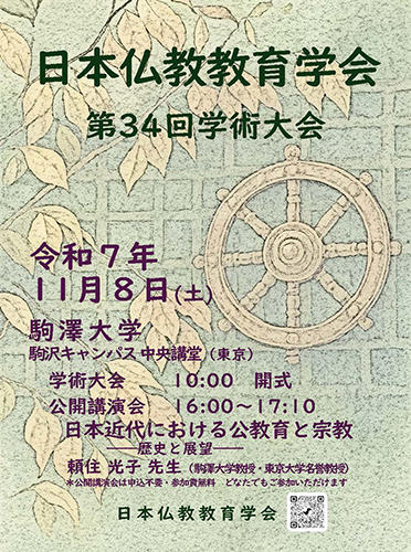 日本仏教教育学会第34回学術大会の開催にともない、以下の講演会を行います。