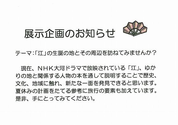 7月の展示『「江」の誕生の地とその周辺を訪ねてみませんか?』
