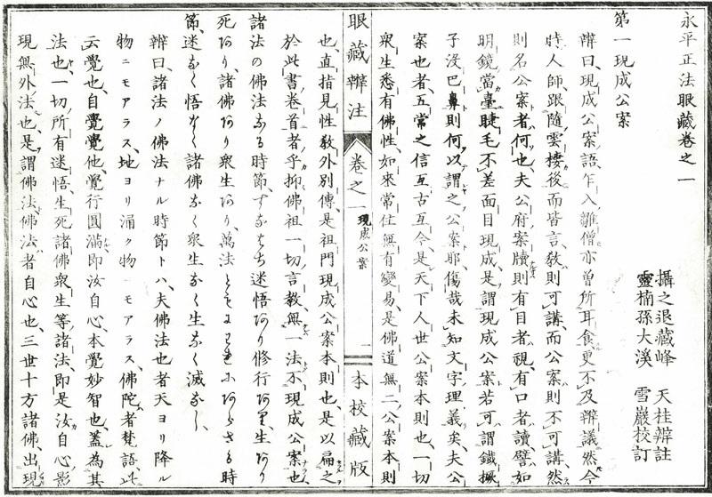 『正法眼蔵辨註』は、江戸時代中期に天桂伝尊が著した、道元禅師『正法眼蔵』の注釈書です。江戸時代には『正法眼蔵』出版禁止令などもあり出版は適いませんでしたが、明治時代になり、久我環渓、大渓雪巌により開版・出版されました。