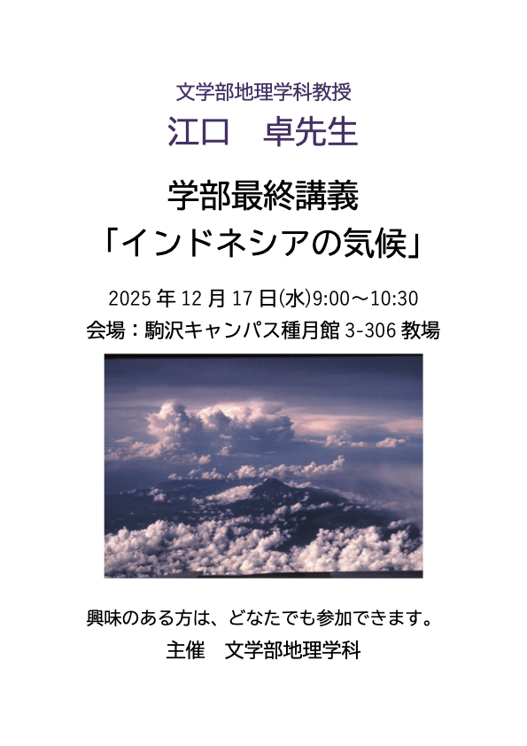 日時:2025年12月17日(水)9:00~10:30 (「気候学B」の授業時間)