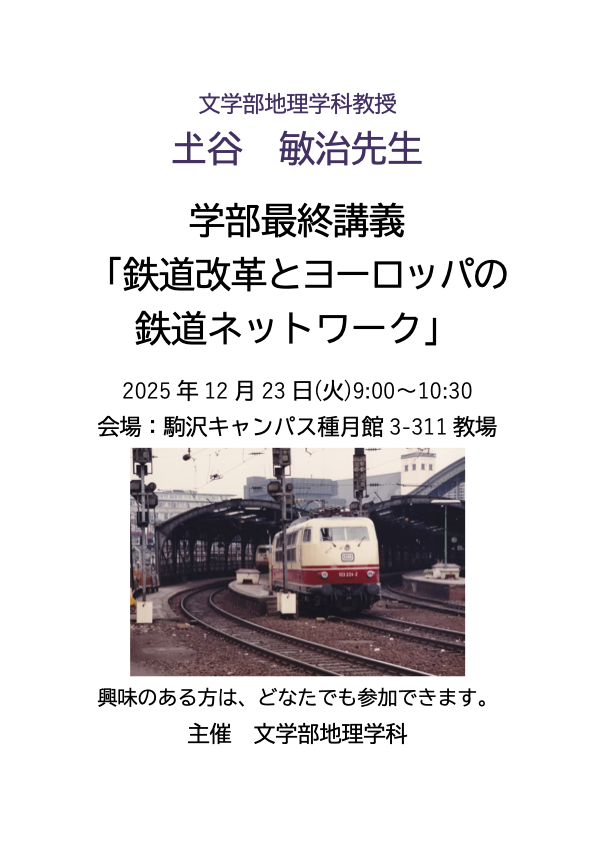 日時:2025年12月23日(火)9:00~10:30 (「交通地理学B」の授業時間)
