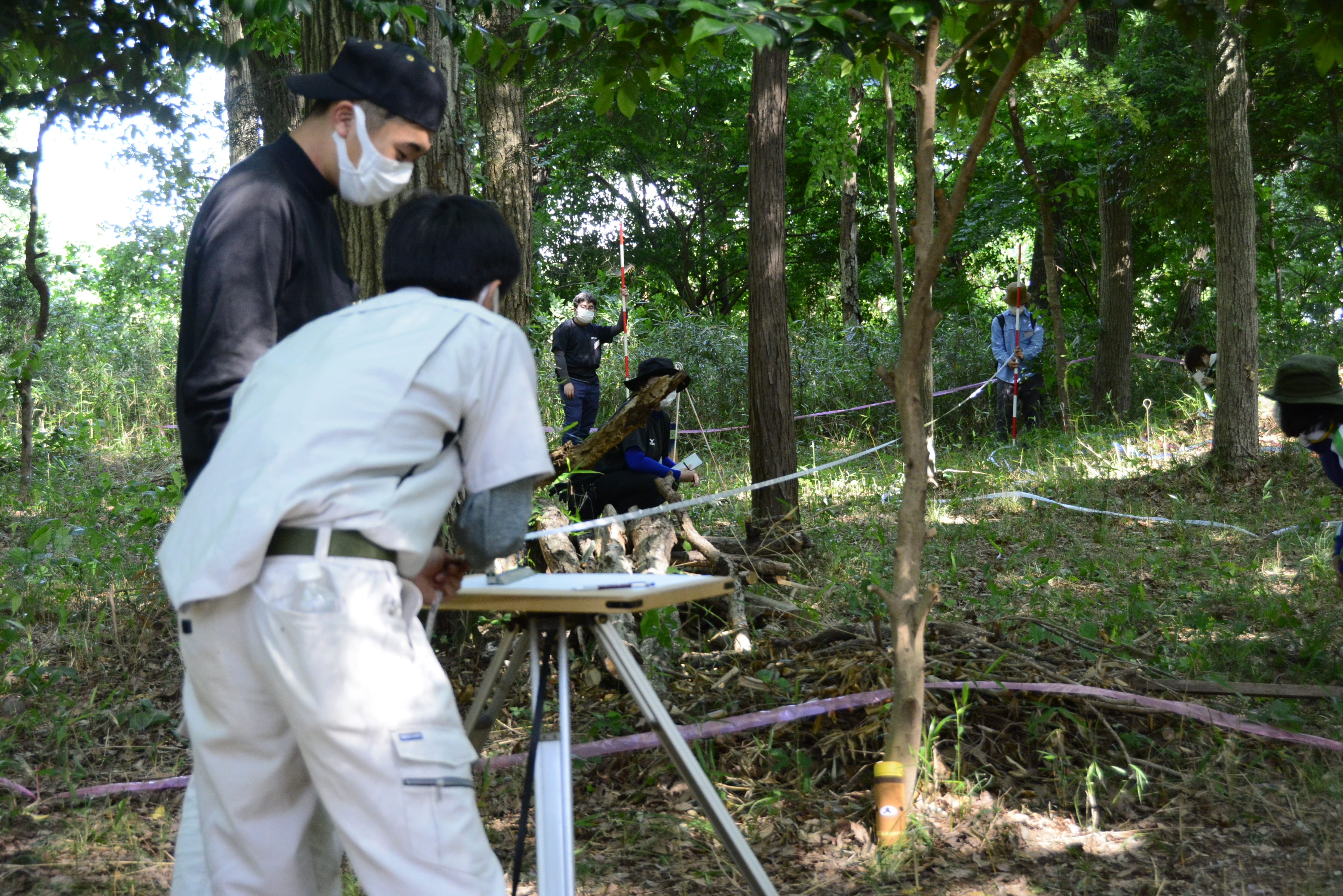 考古学発掘実習Ⅱの一環で、夏季休業中の8月1日から8月12日まで、東京都世田谷区九品仏浄真寺境内に所在する中世城館跡である奥沢城跡で測量調査を行いました。土塁の測量でしたが、初めて調査に参加した1年生をはじめ調査経験を積むことができました。