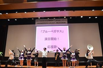 ラボラトリの開所式および応援団の結成会をはじめるにあたり、駒澤大学応援指導部「ブルーペガサス」のみなさんに、応援をしていただきました!