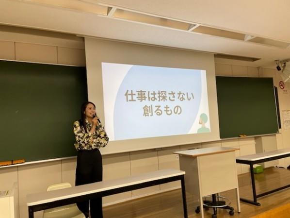 新入生セミナー×現応ラボ企画として、2025年6月26日に「働き方(キャリア形成)についてエシカルの視点から考える」を実施しました。SDGs認知活動の分野で学生起業し、現在は女性起業家として活躍する難波 遥 氏(株式会社Hands UP 代表取締役)をゲスト講師としてお招きしました。