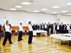 応援指導部ブルーペガサスのステージでは、応援歌、応援曲の披露があり、最後の演目駒澤大学校歌をフロア全員で斉唱いたしました。