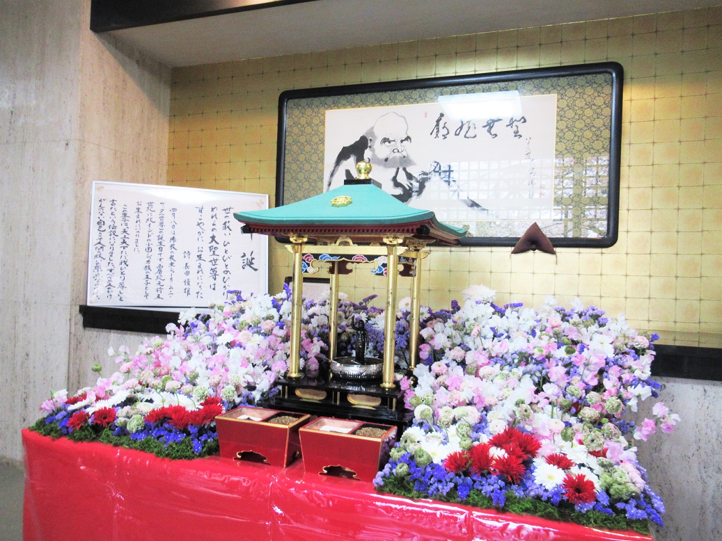 誕生仏の像の頭上に甘茶を灌(そそ)ぐことから灌仏会(かんぶつえ)ともいわれます。キャンパス内の禅研究館では、ご来場された方々が甘茶をそそいでいました。