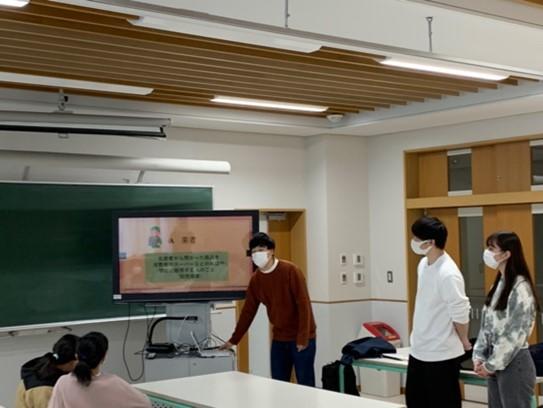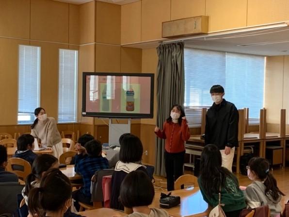 今回のターゲットが小学 5 年生ということで、「伝わりやすさ」や「聞いて見て楽しい発 表」を念頭に置いてグループで活動してきました。当日の発表直前まで、内容が複雑になっ ていないか、ワクワクするスライドが作れているか、などの不安でいっぱいでしたが、積極 的に参加・発言をしてくれる小学生を見て、それらの不安が払拭されました。また、小学生 らの回答や考え方から、私たちが学ぶことも多くあり、とても有意義なものとなりました。