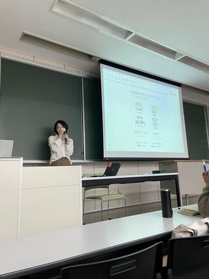 化粧品は学生たちにとっても身近で興味のある商品であることもあり、講義の後半では学生からの積極的な質疑応答が行われました。最後に、人事部の斎藤香織さんから、アイスタイルのビジネスモデルについてもお話をいただき、有意義なゲスト講義となりました。