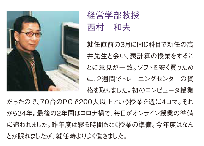 西村和夫教授「在職中の思い出」『学園通信[ノウ]』第350号(2022年1月15日)