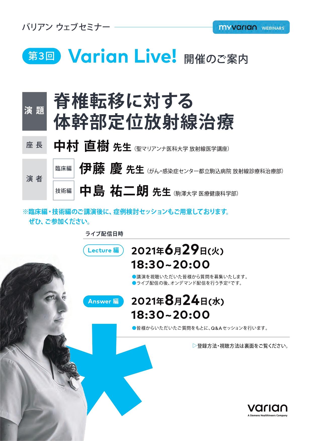 『第3回 Varian Live! Answer編』で脊椎転移に対する体幹部定位放射線治療について講演します 中島 祐二朗 講師が『第3回 Varian Live! Answer編』で脊椎転移に対する体幹部定位放射線治療について講演します。 前の記事 次の記事