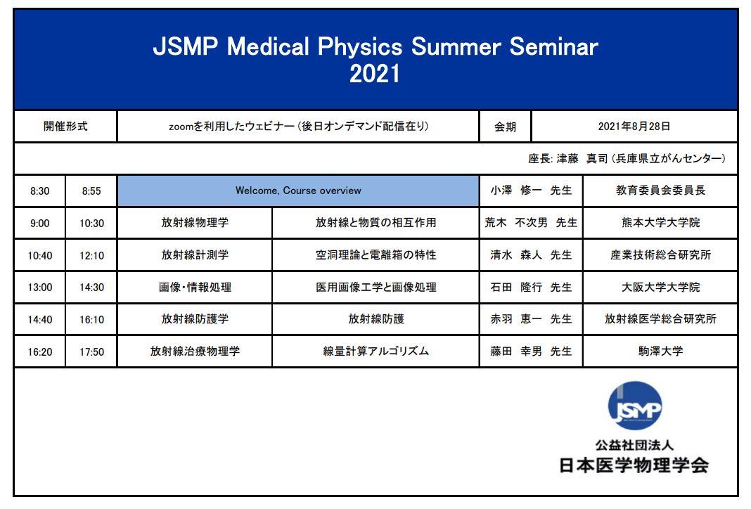 JSMP医学物理サマーセミナー2021 HP:https://www.jsmp.org/summerseminar/jsmpsummerseminar2021/