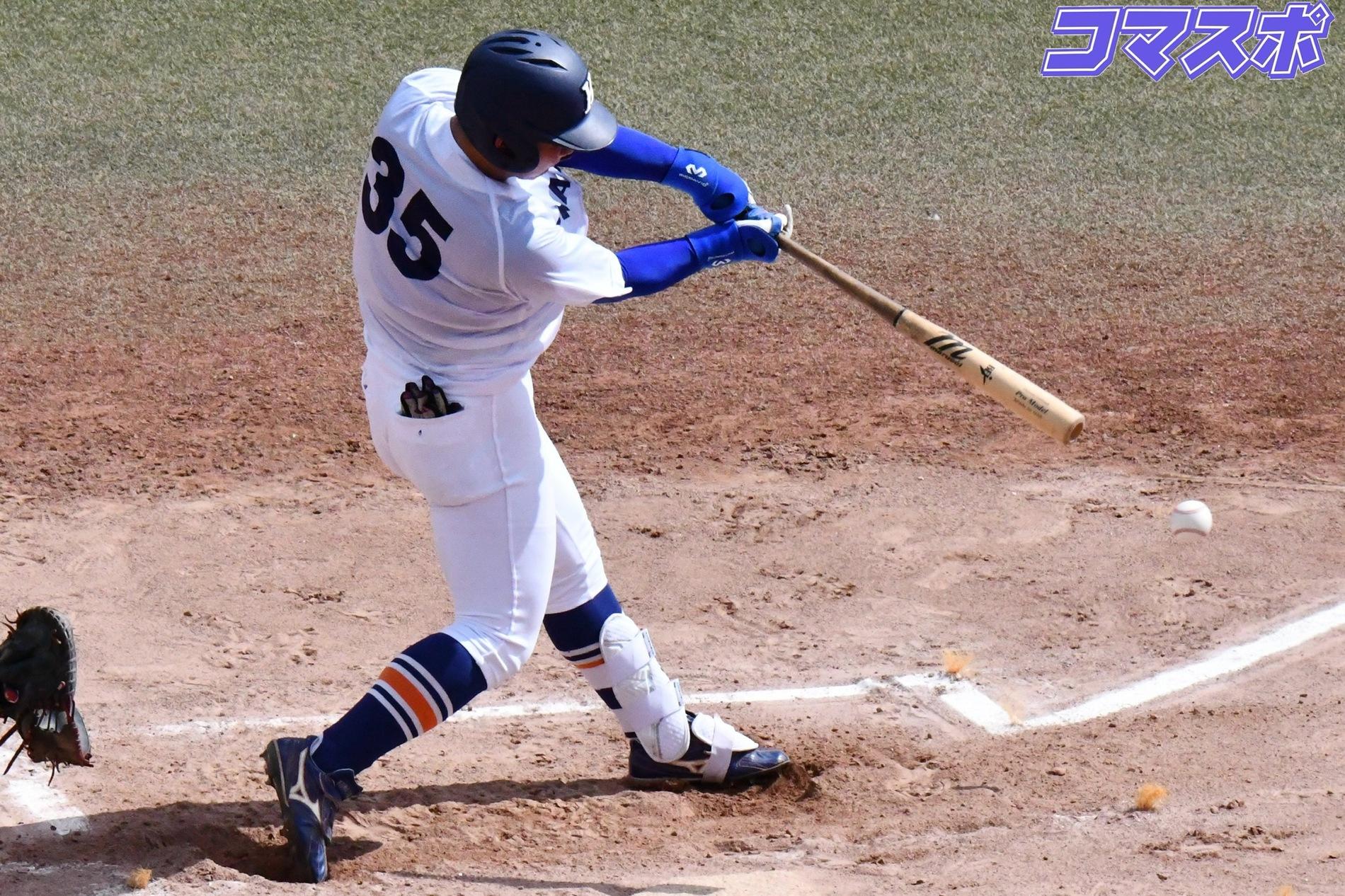 反撃を試みる6回裏、2死から②小林伶斗(政3)が四球を選び出塁。③永野陽大(仏1)が左安打を放ち、2死一二塁と、好機を広げ、④三方が左適時打で1点を返し、すぐさま同点に追いつく。さらに追加点を獲りたい駒大だが、後続が倒れ、逆転とはならない。