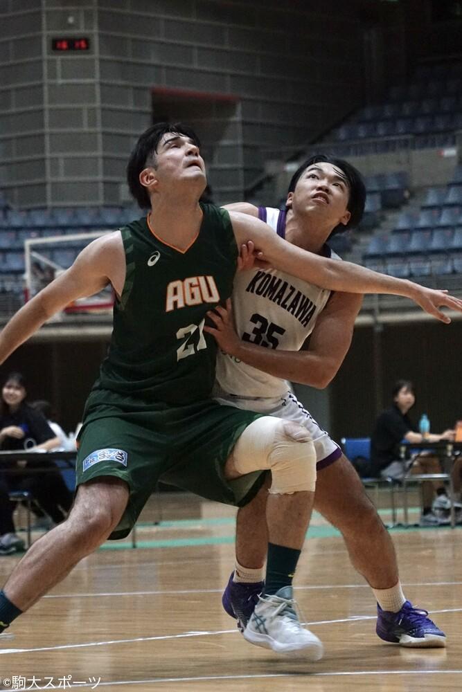 第1Qは先制点を青学大に奪われると、そこからずるずると青学大のペースに。ゴール下でシュートを落とすシーンも続き、厳しい状況だったが、打開したのは30番末永。エンドラインすれすれでフェイクを入れた鋭いドライブからシュートを決め、会場を盛り上げた。第2Qも厳しい立ち上がりに。#11齊藤雄都(市3)が流れをつなぎとめるが、一気に10点差をつけられる。6:24にたまらずタイムアウトを取り、形勢を立て直すと、#11齊藤、#22斉藤綸太郎(経3)を中心に得点し、6点差で持ちこたえた。第3Qは#11齊藤と#31石山が活躍。石山は今試合39分の出場時間とほとんどフル出場ながら、献身的にゴール下でリバウンドに絡み、チーム最多の20得点を記録した。第4Qは#18大矢が、スリーポイントシュートを2本決め、流れを掴むが、あと一歩点差が縮まらず、5:51で駒大のタイムアウト。勝利へ向けて切り替え#31石山が同点、そして逆転のシュートを決めると69-65のまま硬直状態に。このまま勝利かと思ったが、青学大がスリーポイントシュートを決め、一気に1点差に迫られる。#3田中がフリースローを1本決め、2点差にするが、残り0.8秒で駒大のファール。青学大が張り詰めた緊張感の中、落ち着いてフリースローを2本沈め、70-70の同点で、試合は延長戦に突入した。延長戦は主力選手の出場時間が軒並み長かったことも影響し、完全に青学大ムードに飲まれ、得点することができず、そのまま敗戦。悔しい結果となったが、試合後には主将の#19大熊純平(経4)や前田ヘッドコーチからも「青学大とここまでやれたことには自信を持っていい。切り替えていこう」と前向きな言葉があった。