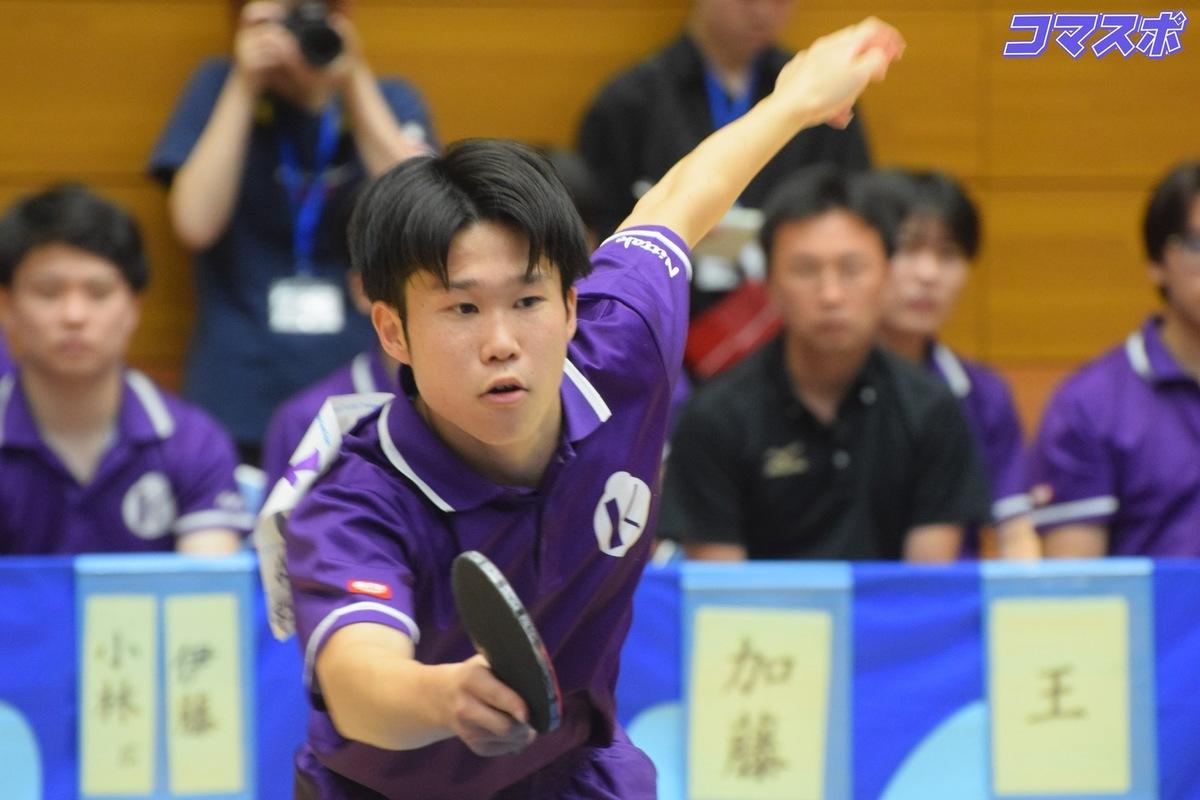 「第1試合に出場させてもらった。相手も強い選手だった。自分自身あまり出だしが得意ではないが、今回は関東学生やインカレの流れもあって、うまく試合ができた。ダブルスは負けてしまったが、総力戦でみんなで勝ち取った試合になった」