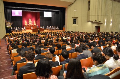 式は23日と24日の午前と午後、計4回に分けて行われ、大学院修了生67人、学部卒業生3,215人の合計3,282人が本学を巣立ちました。晴着に身を包んだ卒業生らは恩師や友人と語らい、別れを惜しんでいました。