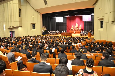 式は23日と24日の午前と午後、計4回に分けて行われ、大学院修了生71人、学部卒業生3,321人の合計3,392人が本学を巣立ちました。晴着に身を包んだ卒業生らは恩師や友人と語らい、別れを惜しんでいました。