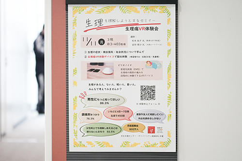 11月11日(月)に駒沢キャンパス種月館にて、経済産業省 令和6年度「フェムテック等サポートサービス実証事業費補助金」採択事業として、在学生・教職員を対象とした「生理を理解しようとするセミナー・生理痛VR体験会」を開催しました。