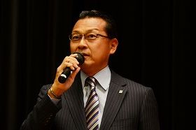 壮行会では、チアリーディング部 BLUE JAYSによる演技のほか、花束贈呈、オータムフェスティバル実行委員会による寄せ書き贈呈などが行われ、陸上競技部からは、田中徳定部長、大八木弘明監督、および中村匠吾主将(経済学科4年)をはじめ9人の部員たちが箱根路への意気込みを熱く語りました。