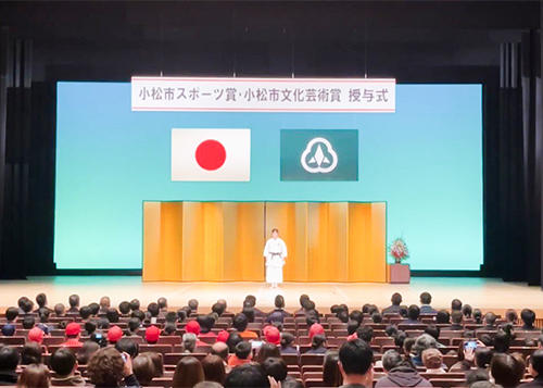 また、2月23日(日)の「小松市スポーツ賞・小松市文化芸術賞授与式」において、演舞を披露しました。