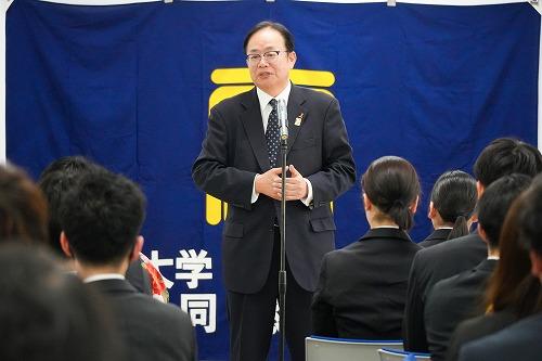 大石 孝 同窓会長と同窓会常任役員より、令和6年度に活躍し、優秀な成果・成績を修めた同窓生・学生サークル・学生個人へ表彰状並びに目録が手渡されました。