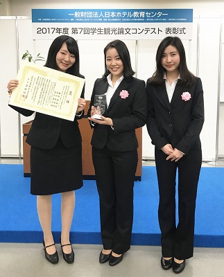 経済学部・番場 博之ゼミの学生3人が「第7回学生観光論文コンテスト」(主催:一般財団法人 日本ホテル教育センター)で、優秀賞を受賞しました。なお、最優秀賞は該当者なし、優秀賞が2編でした。