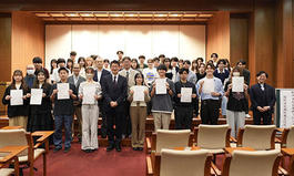 2025.06.04 研究・授業 令和7年度「駒大生社会連携プロジェクト」採択決定通知書交付式を実施しました6月2日(月)に、令和7年度「駒大生社会連携プロジェクト」採択決定通知書交付式が開催され、村松 哲文 学長より、採択決定通知書とともに激励の…