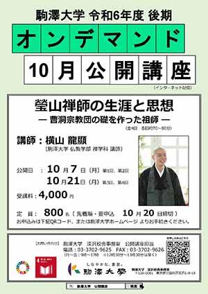 令和6年度 駒澤大学公開講座 10月オンデマンド配信講座