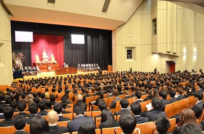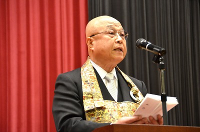 本日入学された皆さんには、是非、本学の建学の理念に照らして、深くいのちの原点に想いを致し、仏の智慧に学び、仏の慈悲を行じ、信ずるに足る、誠を尽くせる人生、敬うべき、愛するべき人生とは何かを問う真の学問を、真の教養を身につけて頂きたいと願います。